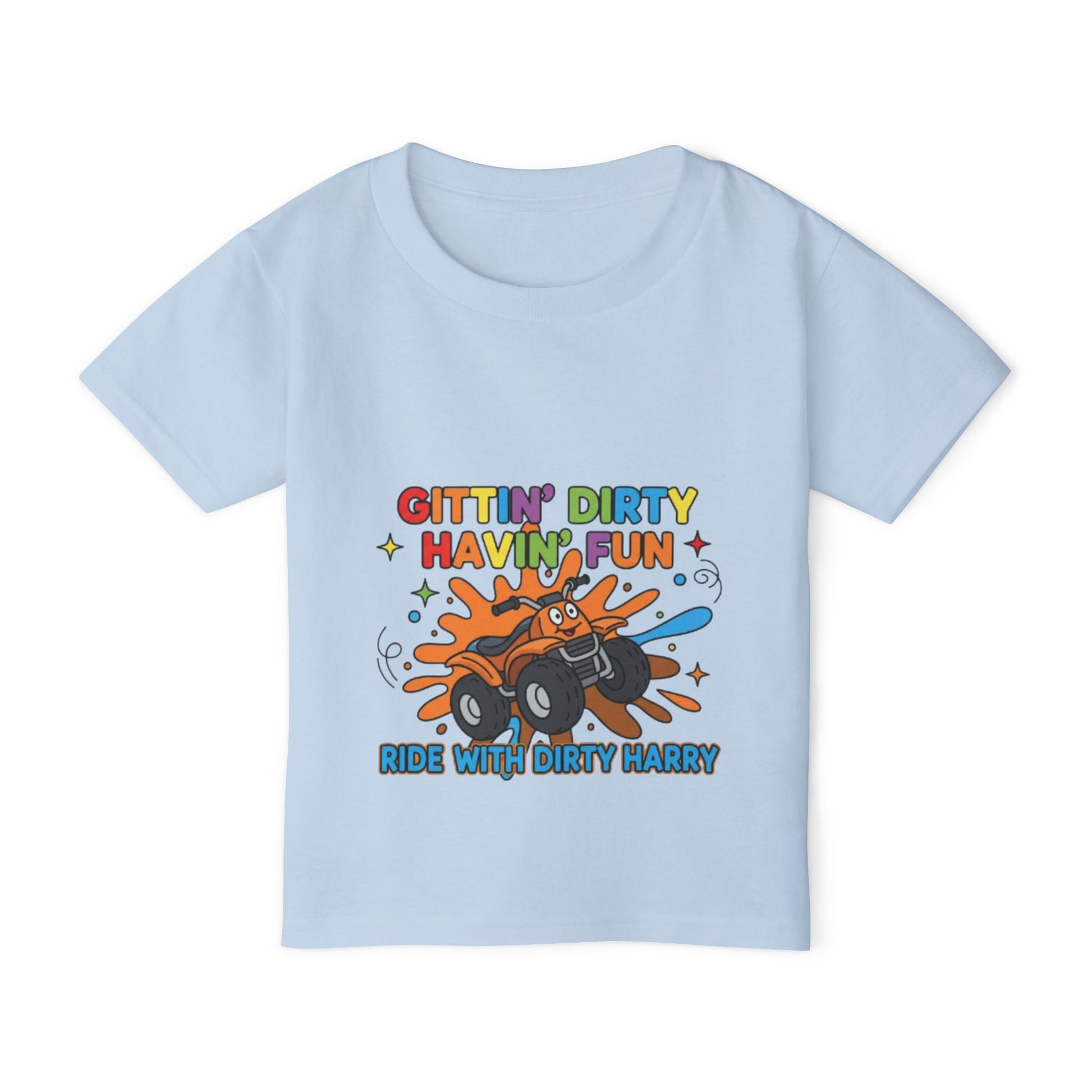 Perfect for toddlers who love trucks, mud, and adventure! This Gittin' Dirty Havin' Fun tee celebrates the joy of outdoor play with a fun mud truck graphic that captures the spirit of childhood exploration.
